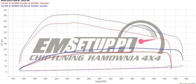 To kolejny przykład skutecznego tuningu Mercedes Citan 1.5 CDI, w którym odpowiednio dobrany PowerChip Premium zapewnia realne przyrosty mocy i momentu, poprawiając elastyczność i efektywność jazdy – dokładnie w standardzie EMSETUP.